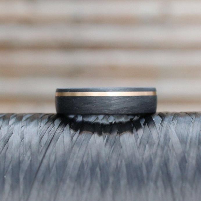 Every ring is unique as the Carbon Fibres will lay a little differently each time a ring is made. I hand wind the carbon Fibre, vacuum treat, then heat cure, making the carbon fibre exceptionally hard.