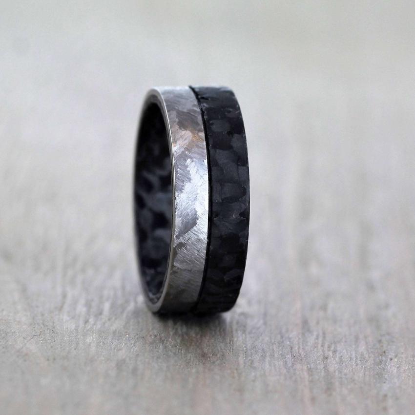 Custom Made 8mm, Forged Carbon Fibre and Titanium, Textured ring with comfort fit inside, perfect for personalized engraving.