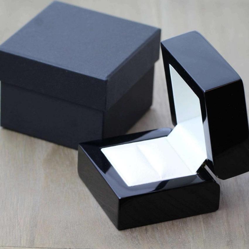 Presented in a polished Black Wood Ring Box with Black outer Box.