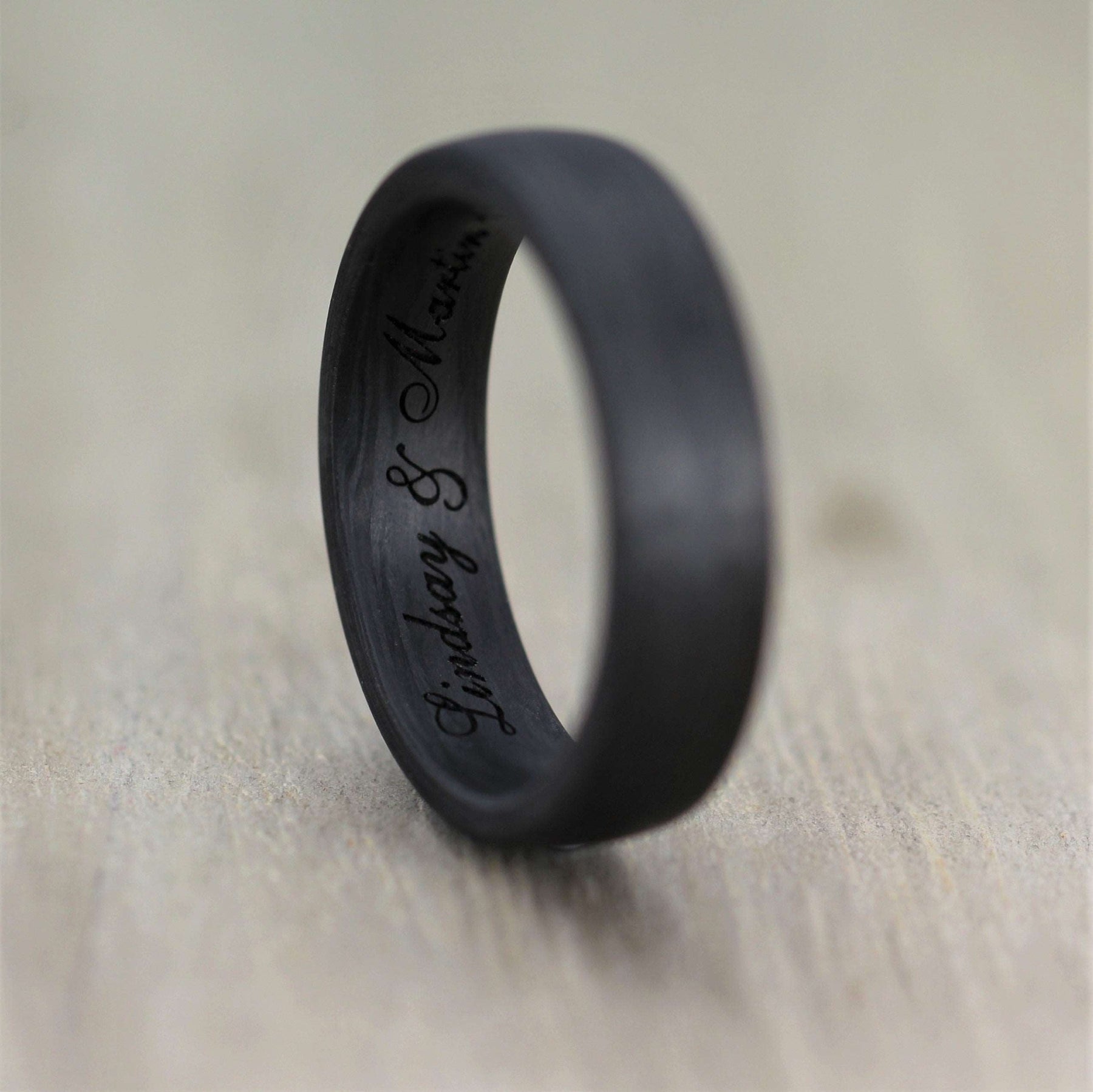 Every ring is unique as the Carbon Fibres will lay a little differently each time a ring is made.