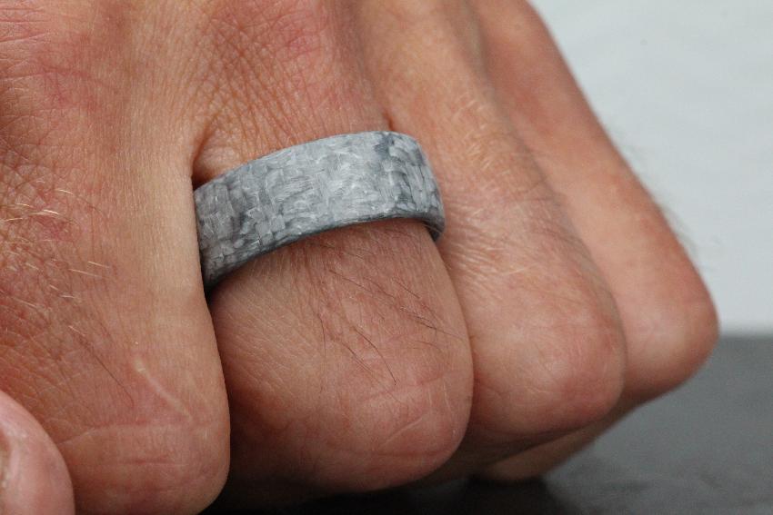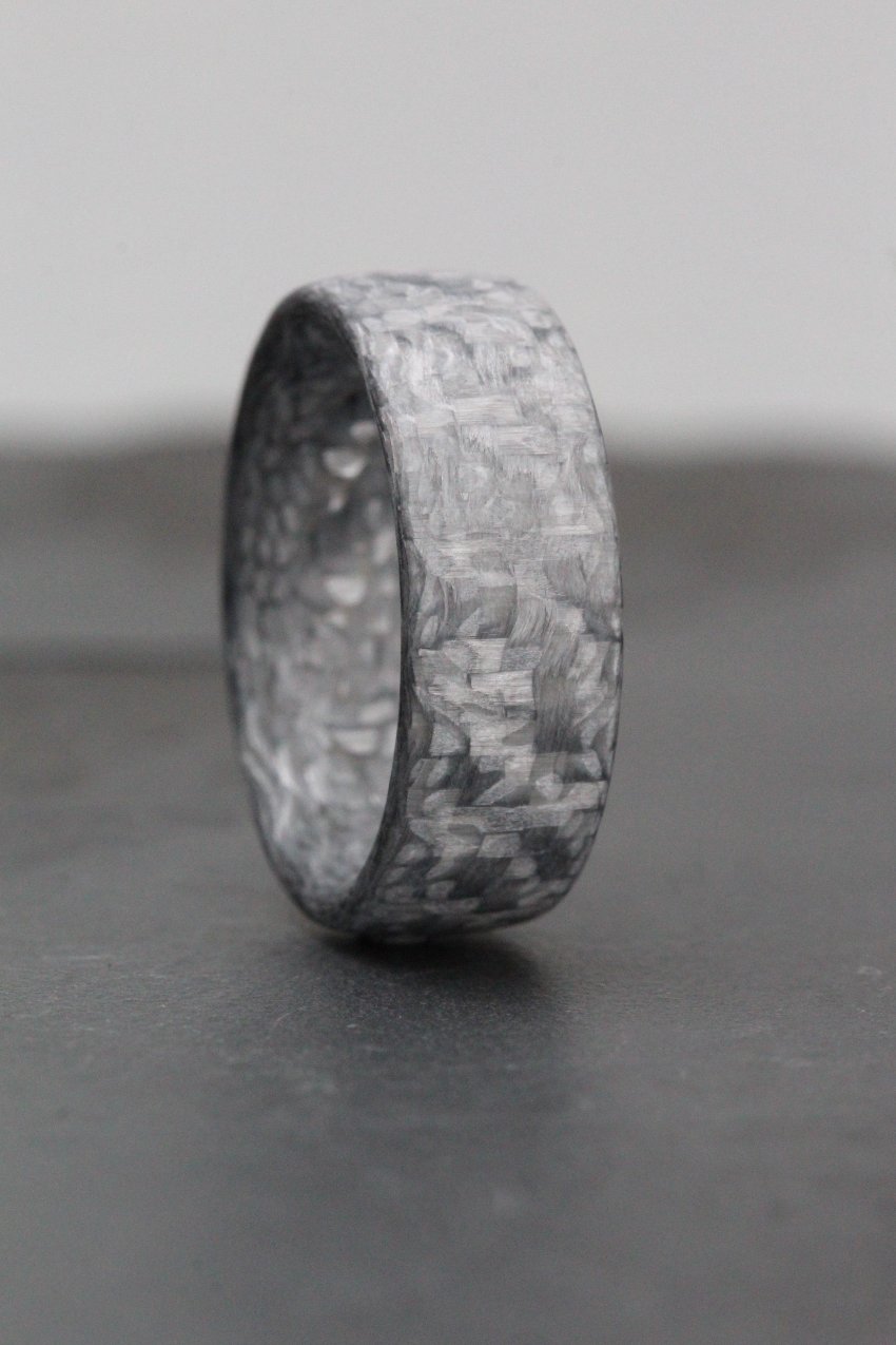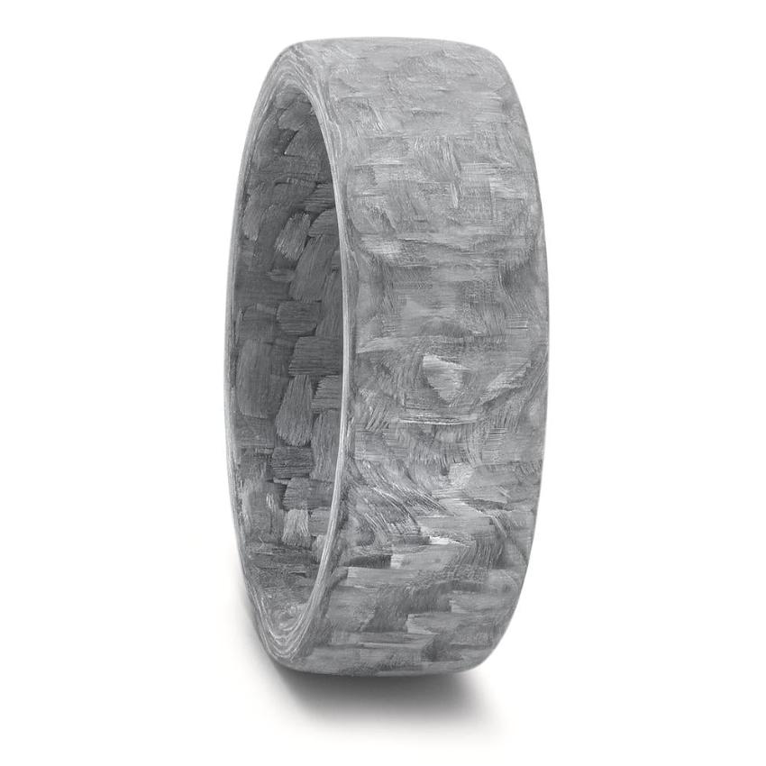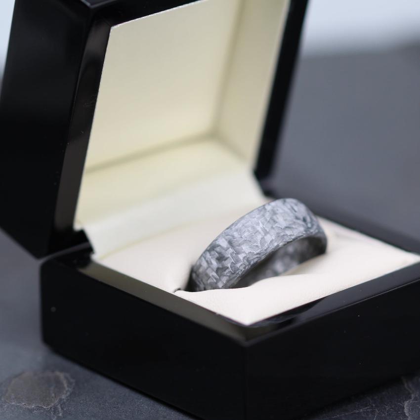 Light Grey Carbon Fibre Wedding Ring Band. Domed outer with Ultra comfort fit inside.