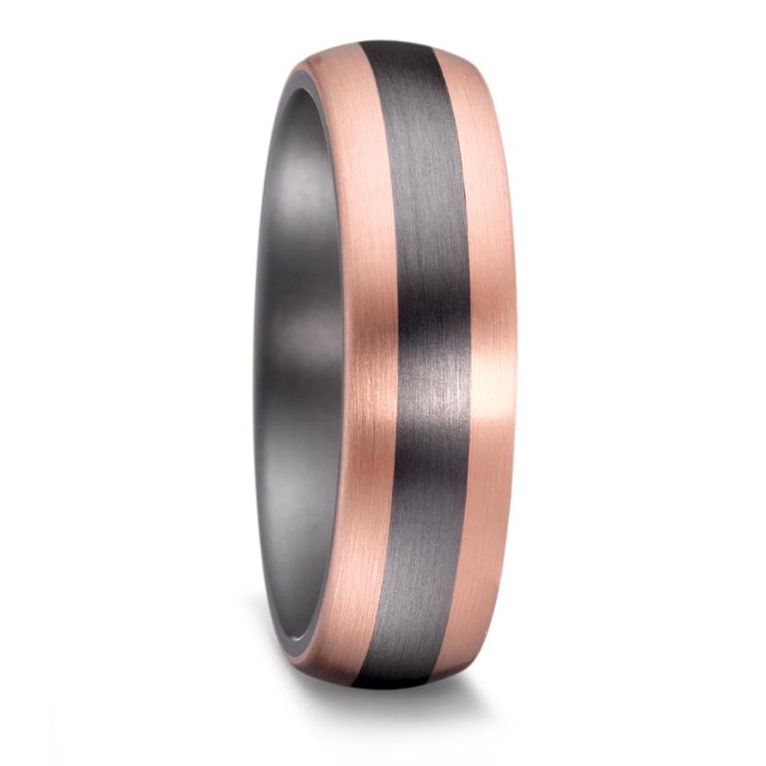 This timeless Tantalum and Rose Gold Wedding Ring is crafted with contemporary style to perfection. Boasting an elegant 14K rose gold side detail, a court shape, and a comfort fit that is 5.5 or 6.5mm wide, this ring is the perfect symbol of commitment and love.