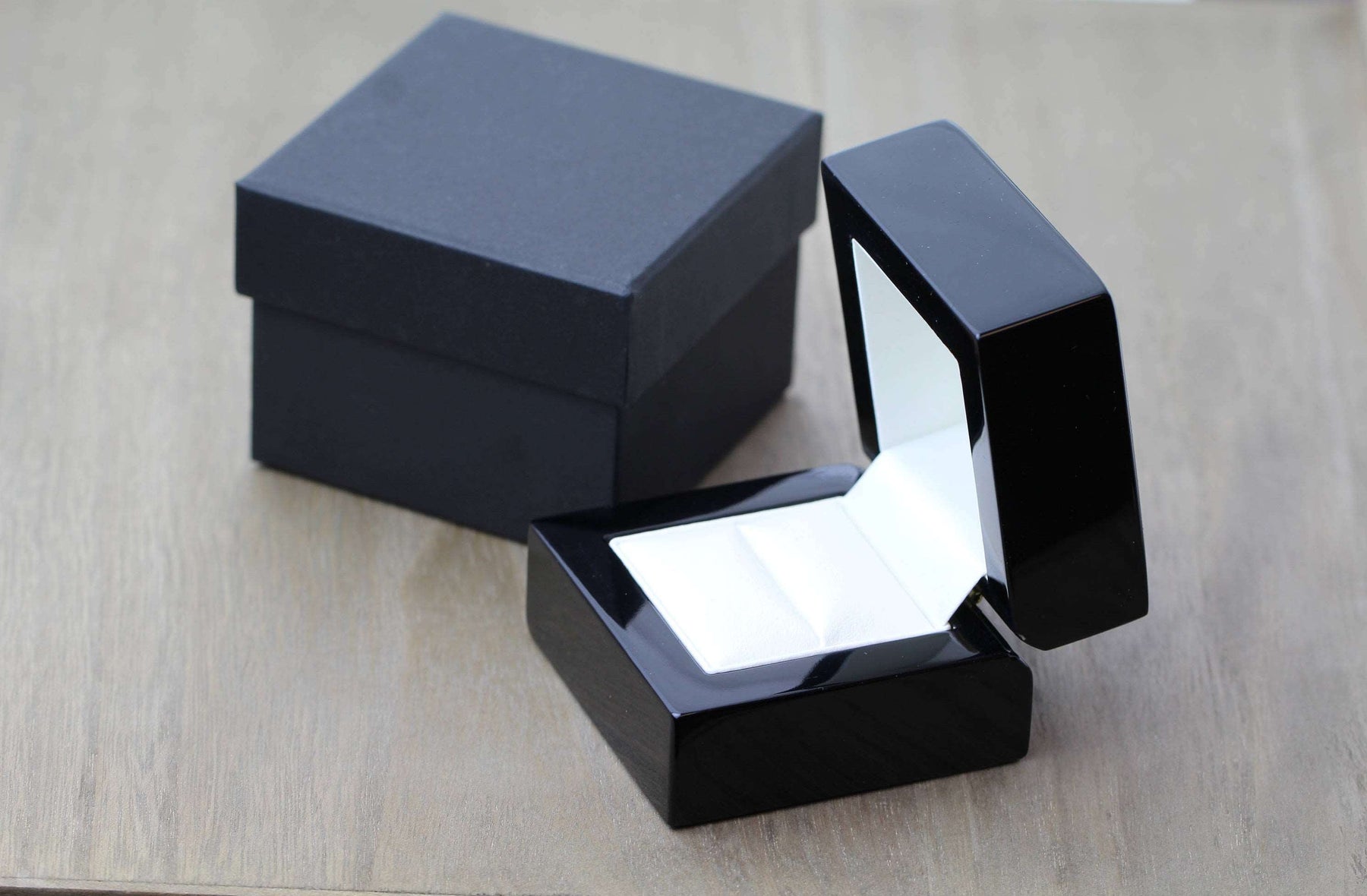 Presented in a polished Black Wood Ring Box with Black outer Box.