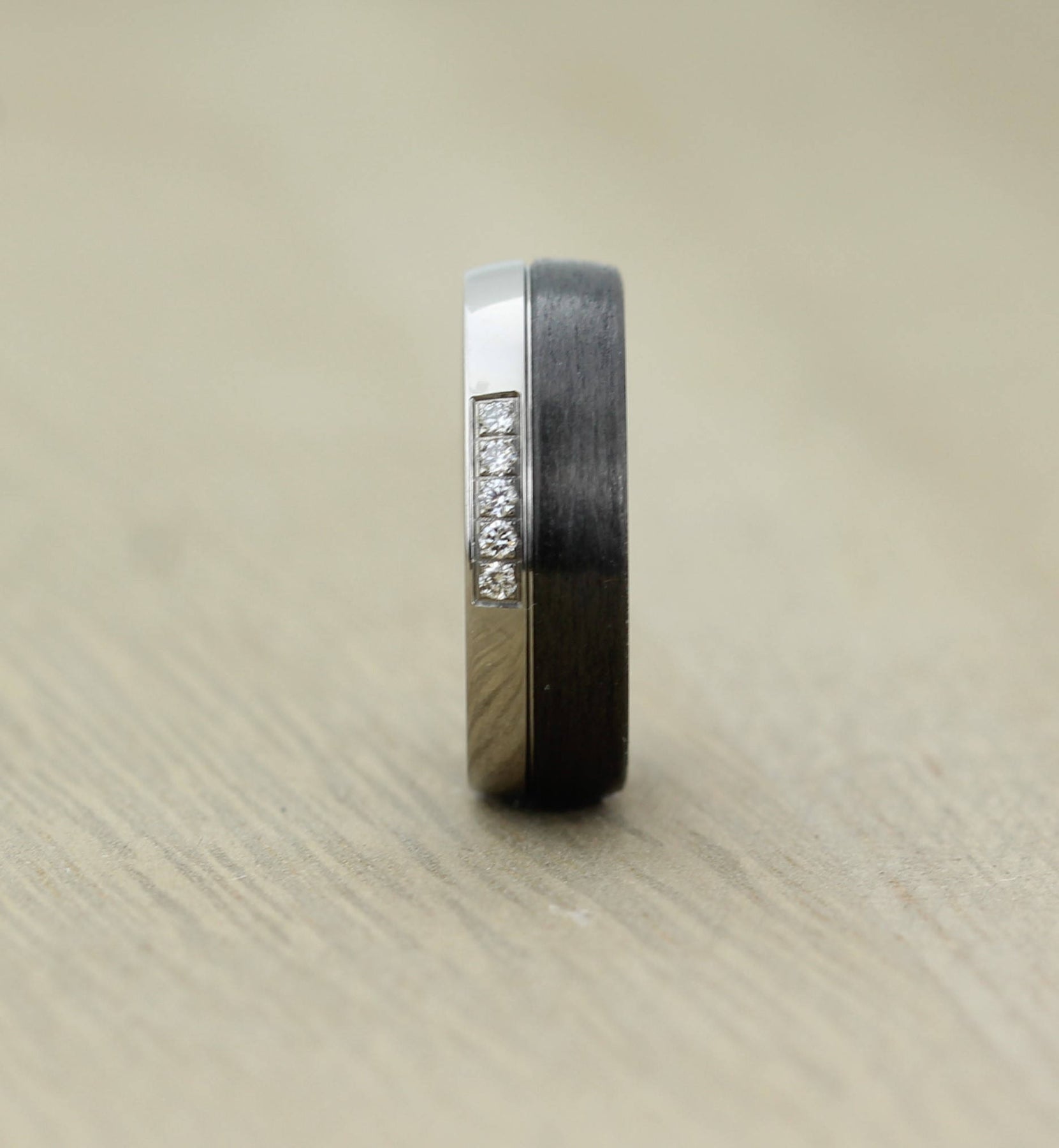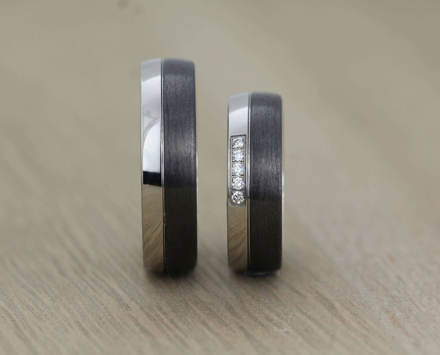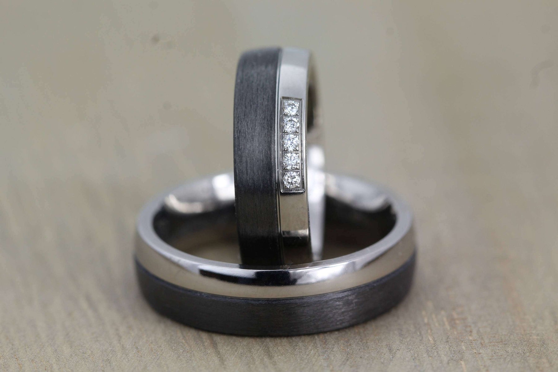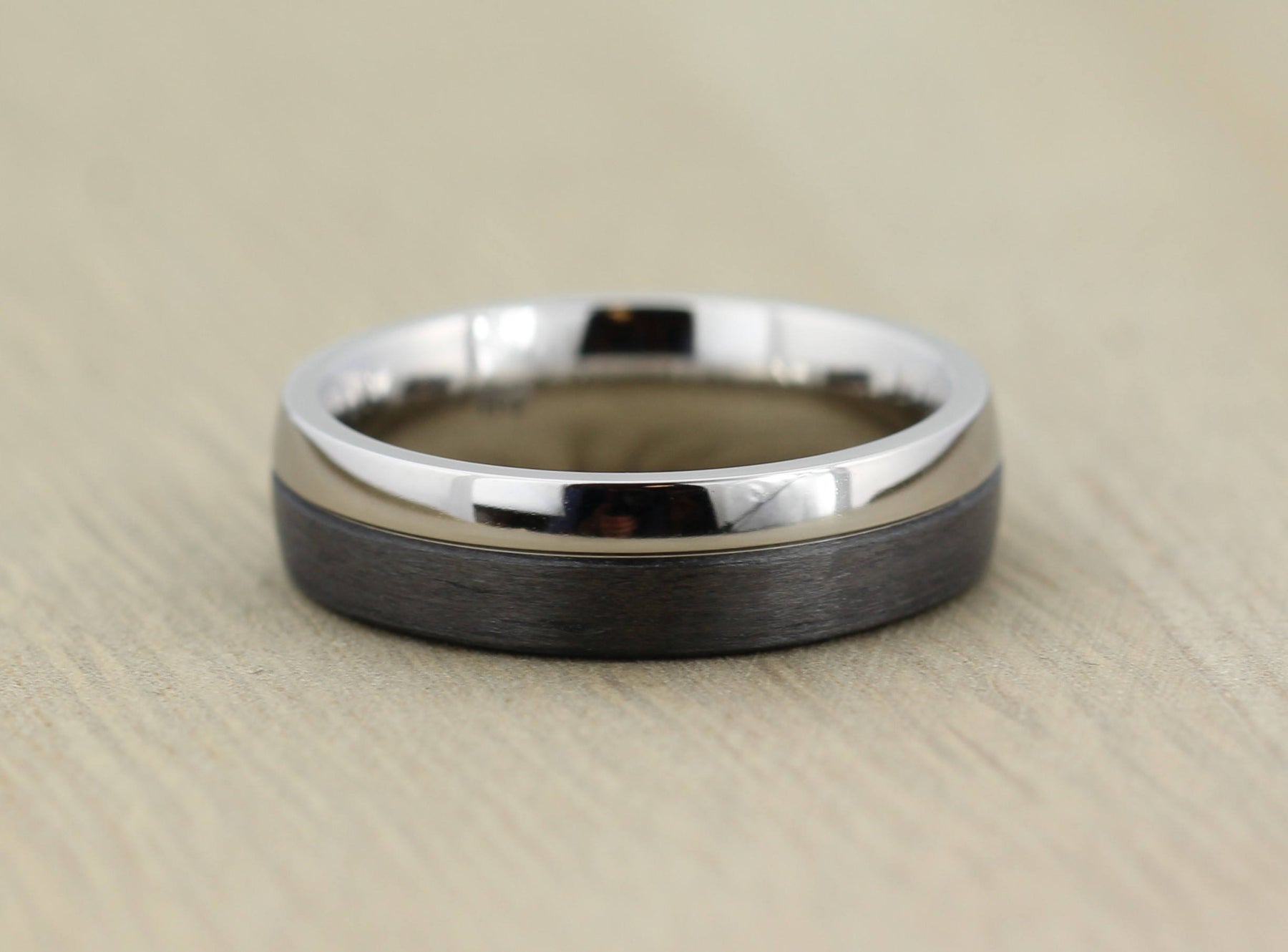 This is a pair of custom made 6mm, carbon fibre rings with a polished Titanium inside that is suitable for personalized engraving. This particular pair are 6mm wide, however I can custom make this style to any width from 4.5mm.